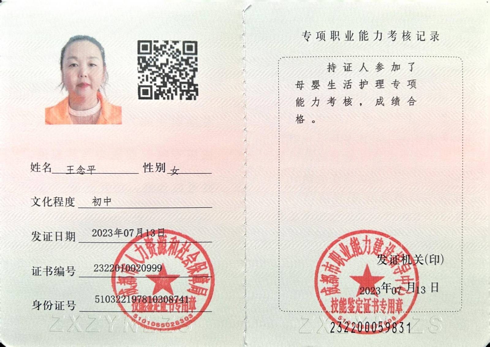 身份证号:510322************