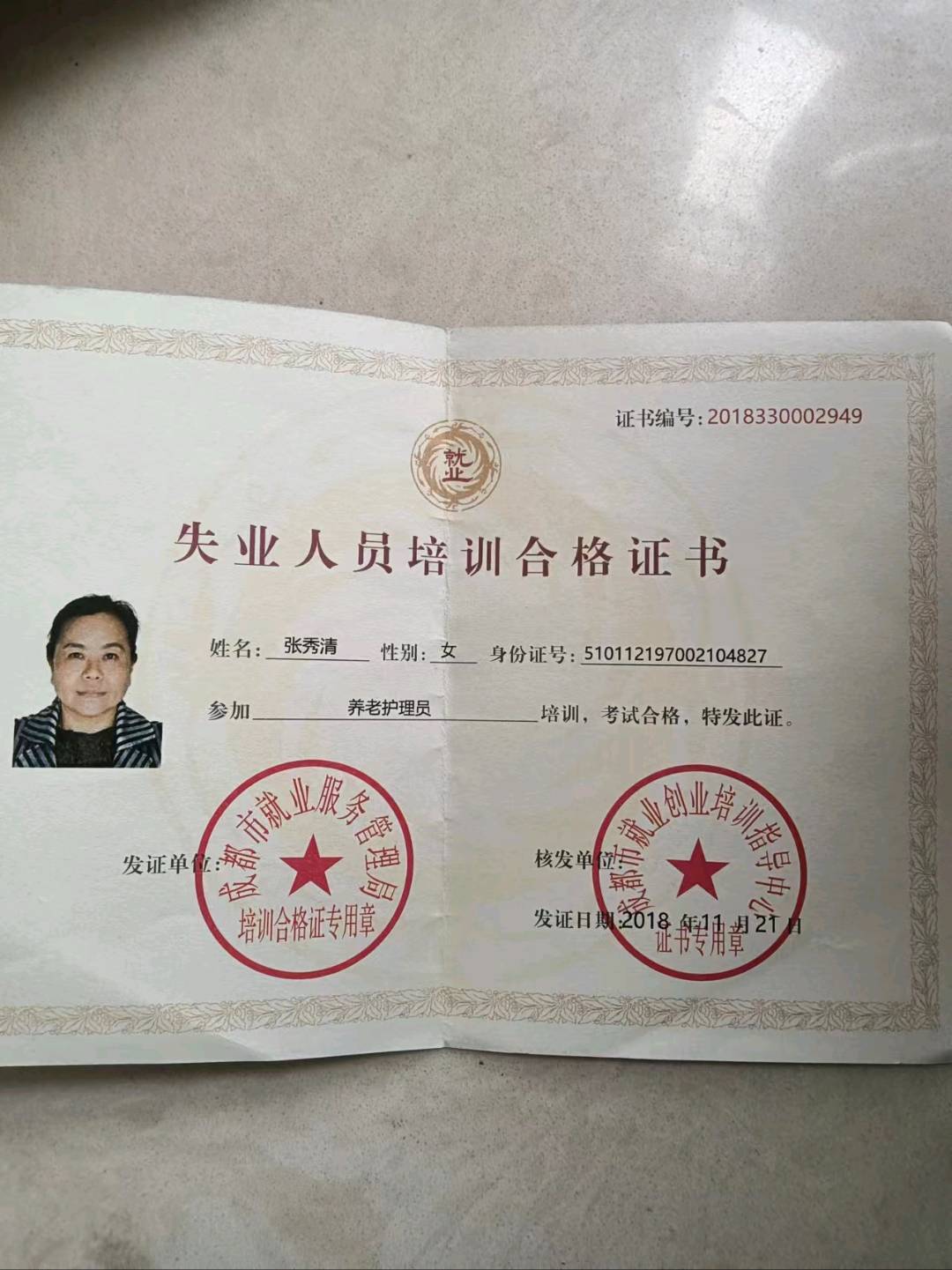 2018-11 | 2018-11 | 成都市就业创业培训指导中心 | 养老护理 |
