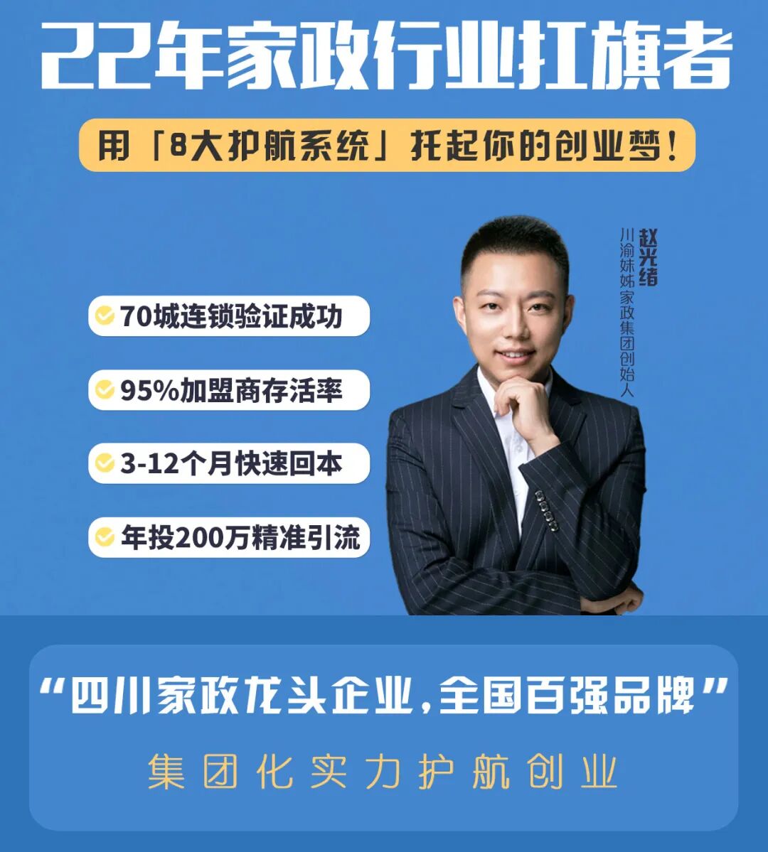 川渝妹姊 22 年深耕家政,用透明、白纸黑字的保障、全流程盯办的支持,帮你避开 “未开店先亏” 的套路,还依托万亿市场和低投入优势,让创业少点风险、多点踏实。